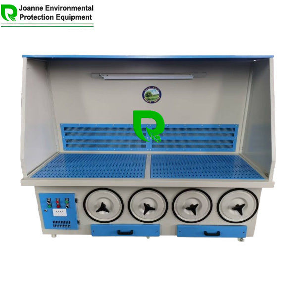 Ogni tavolo può essere collegato a un collettore di polveri con filtro centrale tramite un condotto di ventilazione a spirale, soddisfacendo le esigenze di rimozione della polvere multi-postazione e rimozione della polvere per grandi quantità di lavoro, come la sabbiatura e il taglio della pietra nell'industria della lavorazione della pietra. Può pulire contemporaneamente la polvere da pietra e sabbia dalla sabbiatura.